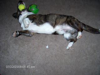 I think these two pictures will show the vast difference between them. Russ--rough and ready to take on the fan, and Music snuggled up the the softest blanket she can find.